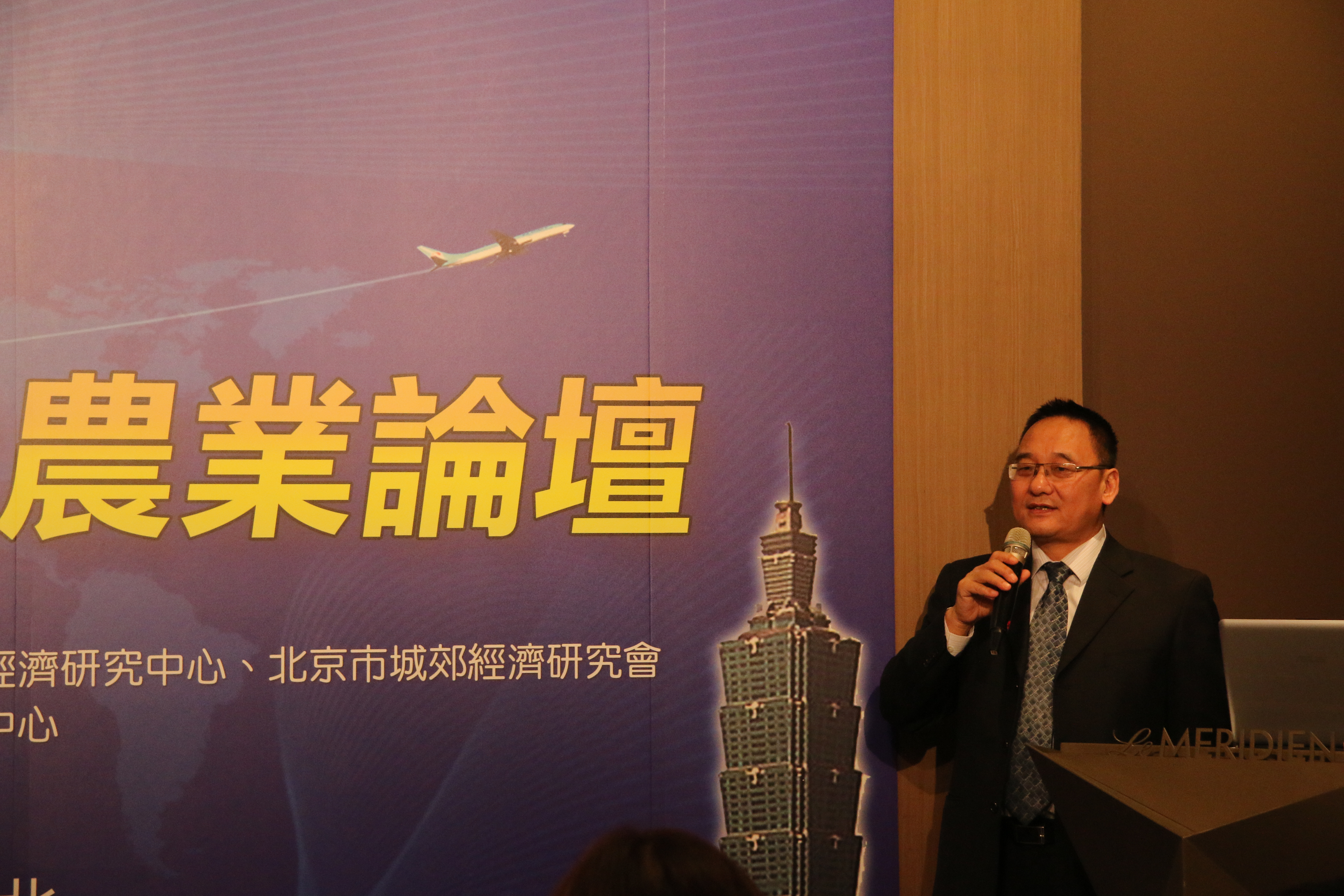 12月18日下午,第十七届京台科技论坛·信息化与现代农业论坛在台北正式举行。台湾农民团体干部联合训练协会秘书长王志文、北京市农村经济研究中心主任、北京市城郊经济研究会会长郭光磊、台湾财团法人爱乡文教基金会董事长苏焕智分别为论坛致辞。郭光磊主任指出,信息化是发展现代农业不能回避的重要问题,近年来北京市在四化同步战略的基础上,强调以信息化带动农业现代化,信息化与农业现代化的融合发展取得了显著成效。未来京台双方农业合作应在信息化应用于农业的研究、试验项目、农业信息化人才培训等方面加强合作。